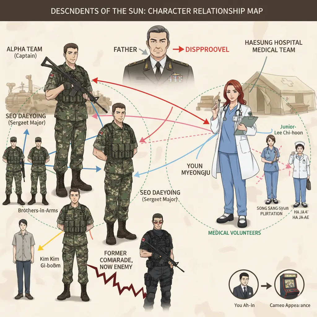 この記事では、『太陽の末裔』のキャストと相関図を、どこよりも詳しく解説します。主要人物から脇を固める個性的なキャラクター、さらにはサプライズで登場したカメオ出演者まで、これを読めばドラマをより一層楽しめること間違いなしです。