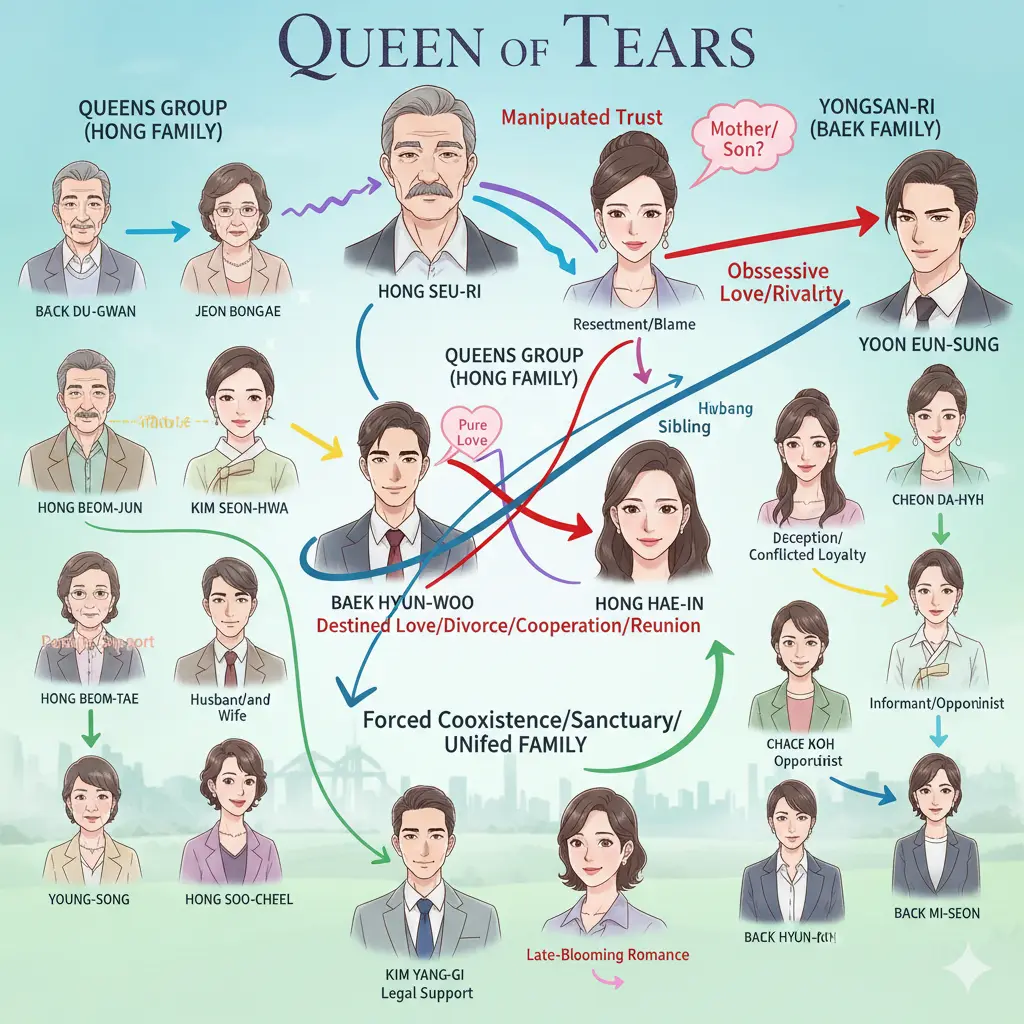 『涙の女王』がこれほどまでに多くの人々の心を掴んだ理由は、豪華なキャストや美しい映像だけではありません。私が考える最大の魅力は、緻密に練り上げられた人間関係、すなわち「相関図」の面白さにあります。